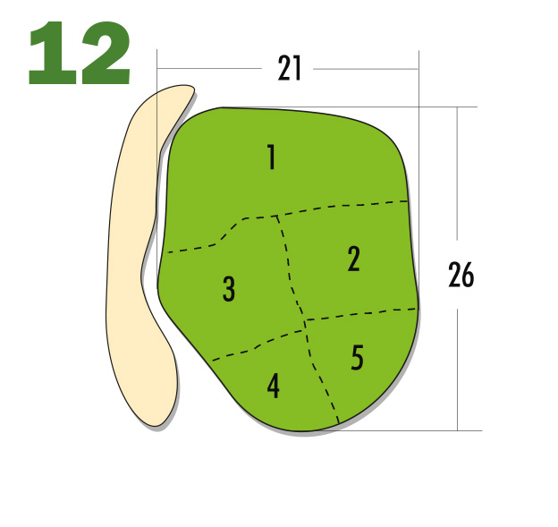 Ein faires Par 3 für alle Spielstärken. Rechts vom Grün wartet ein Teich auf geslicte Abschläge, links ein Grünbunker.